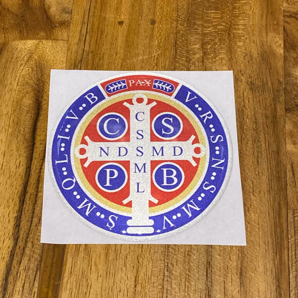 Nosso Adesivo de São Bento Colorido é produzido com materiais de alta qualidade, garantindo cores duradouras que não desbotam facilmente e adesivo resistente à água e ao sol.