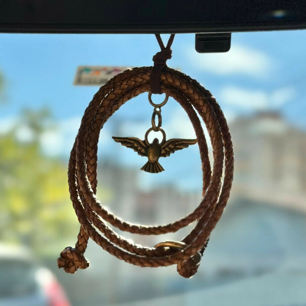 Adorno de Carro Laço em Couro – Elegância e Fé para o Seu Veículo