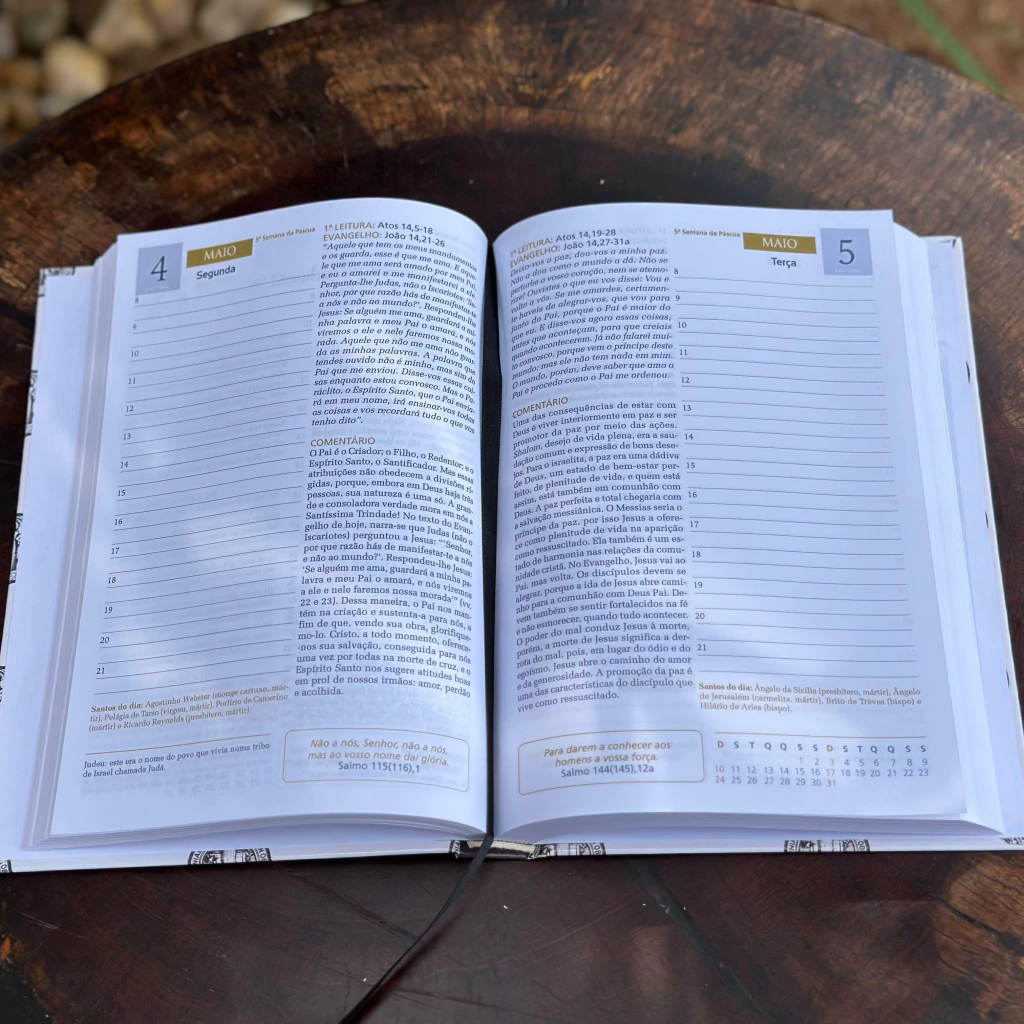 📖 O que você encontrará neste diário? - Espaço para anotações pessoais e reflexões diárias, para que você possa registrar seus pensamentos e experiências espirituais. - Acompanhamento completo da liturgia do ano, tornando sua jornada de oração e meditação ainda mais profunda e organizada. - Um layout pensado para incentivar a disciplina e o amor a Deus, com páginas que convidam à reflexão e à conexão diária com a Palavra.