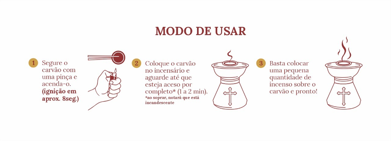Recomendações de uso: Para manter seu incensário sempre bonito, evite quedas e limpe com pano seco após o uso. Use o carvão com cuidado, sempre com a pinça para evitar acidentes.